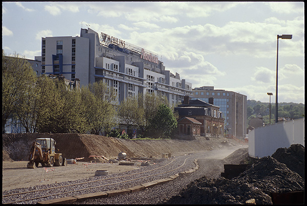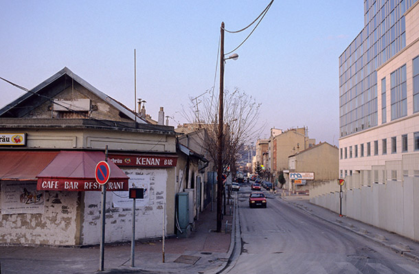 J’aurais pu essayer d’actualiser mon travail en cherchant à revenir systématiquement sur les lieux qui avaient été transformés, dans la logique de ces livres qui opposent un avant à un après en utilisant des cartes postales anciennes, mais ça m’a vite semblé assez vain. En 1989, la transformation de la ville était déjà bien entamée et je n’ai pas de photos de la période antérieure. Cette approche aurait supposé une veille permanente des demandes de permis de construire et donc une disponibilité incompatible avec un fonctionnement en auto-production. J’aurais du intégrer ce dispositif dans mes cadrages. Ne plus cadrer en fonction du présent, mais en anticipant le futur pour que les photographies puissent être rapprochées, opposées.