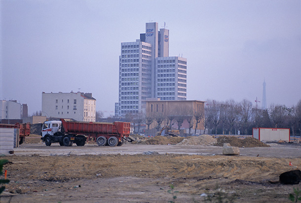 Je suis un photographe indépendant, travaillant dans le cadre de commandes destinées principalement à la communication des entreprises. A l’époque, je réalisais peu d’images en amateur, sans logique économique, pour mon seul plaisir. J’habitais à Boulogne Billancourt et je traversais tous les jours la plaine d’Issy les Moulineaux pour me rendre sur le coteau où se trouve mon studio. Est-ce parce que j’ai été formé à la sociologie, documenter cette révolution urbaine m’est brutalement apparu comme une évidence et une nécessité.